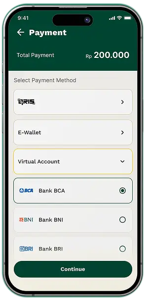 Casion simplifies payment with integrated methods including e-wallets, bank transfers, and credit cards. Users can view past payments and download receipts directly from the app.