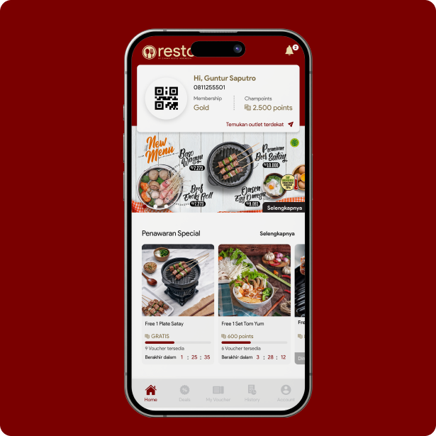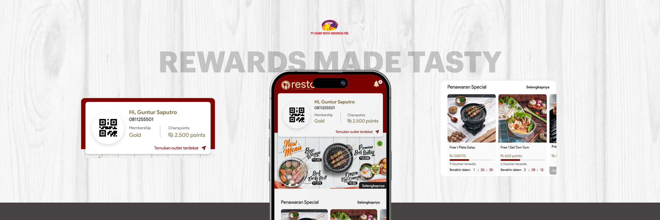 PT Champ Resto Indonesia Tbk required a solution to improve customer engagement through a digital loyalty system while optimizing the restaurant experience. The main challenges included creating an intuitive platform for browsing menu selections, ensuring efficient order and stock management, and integrating a seamless loyalty program. Additionally, the platform needed to support multiple payment methods, dynamic promotions, and customer analytics to enhance decision-making.