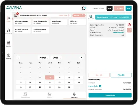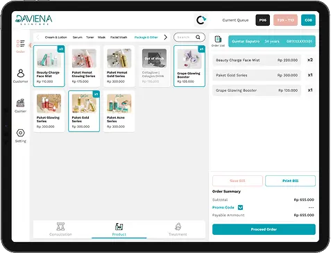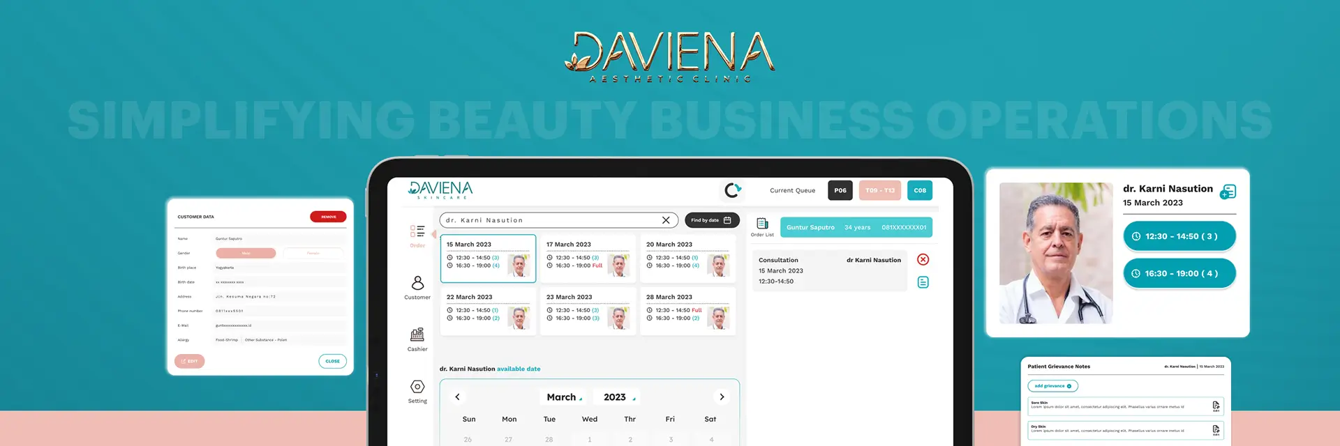 Technopartner Indonesia developed Daviena as a cloud-driven, comprehensive platform designed to streamline operations in clinics and beauty centers. Daviena provides an all-in-one solution for cashiers and service providers, featuring an intuitive user interface that allows cashiers to identify customer profiles, manage product selections, schedule consultations, and process payments with ease. The platform also empowers service providers with powerful management tools, enabling them to monitor customer appointments, optimize treatment schedules, and enhance overall service efficiency.