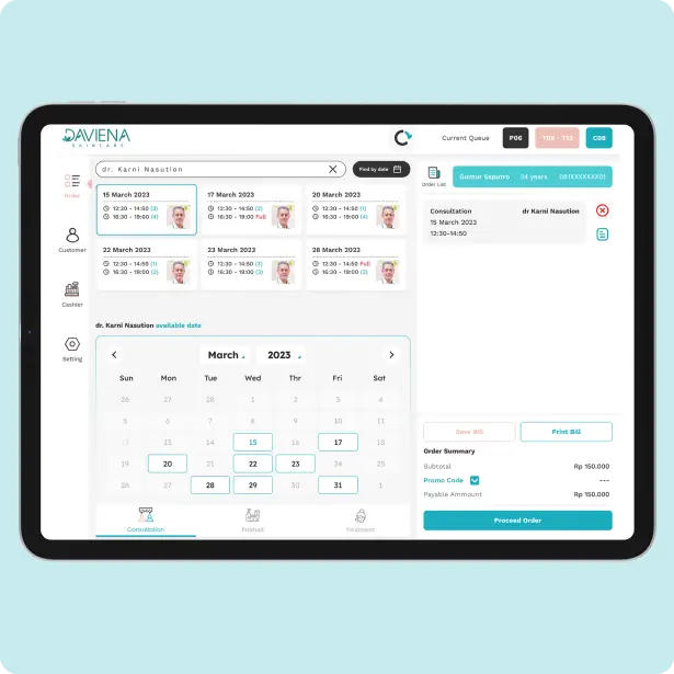 Technopartner Indonesia developed Daviena, a comprehensive platform designed to simplify and enhance customer service experiences in clinics and beauty centers. The system empowers cashiers to efficiently manage customer needs, from identifying customer profiles to guiding product selection, scheduling consultations, and facilitating payments. Daviena connects users with an integrated network of services, providing real-time access to product lists, treatment options, consultation schedules, and transaction processing. Daviena’s goal is to streamline operations and deliver an intuitive, user-friendly solution for both cashiers and service providers.