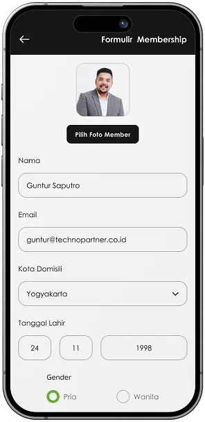 This screen allows customers to register or update their membership information with IXOBOX. At the top, there is an option to upload or choose a profile picture, which will serve as the customer's membership identity. The form includes various personal details such as name, email, city of residence, date of birth, gender, and phone number. The information entered in this form will be stored in the IXOBOX system to provide a more personalized customer experience. Once all the details are correctly filled in, customers can save their information by clicking the “Save” button.