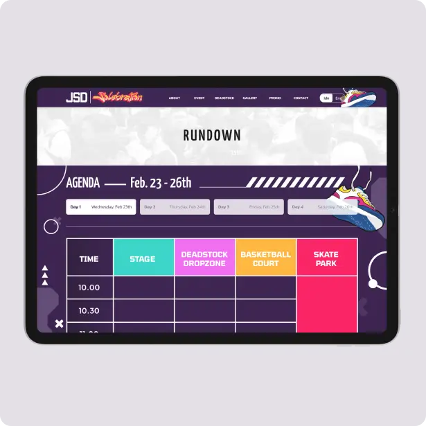 Stay updated with the Jakarta Sneaker Day (JSD) Rundown, your go-to guide for all event activities. From exclusive sneaker brand launches to community meet-ups and live entertainment, this section ensures you don’t miss out on any exciting moments.