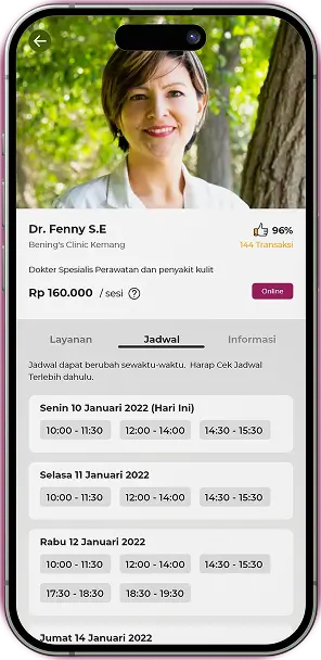 This interface provides an organized view of a doctor’s consultation schedule, helping patients book appointments seamlessly. The UI is divided into the doctor’s profile, consultation details, and a comprehensive list of available time slots.