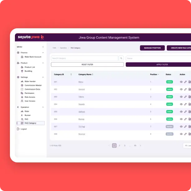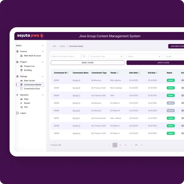 The system includes a Commission Master module that allows administrators to create and manage commission structures based on specific time periods or vendor categories. This flexibility helps Kopi Sejuta Jiwa adapt to promotional campaigns and performance incentives efficiently, ensuring every rider’s earnings are accurately calculated and recorded.