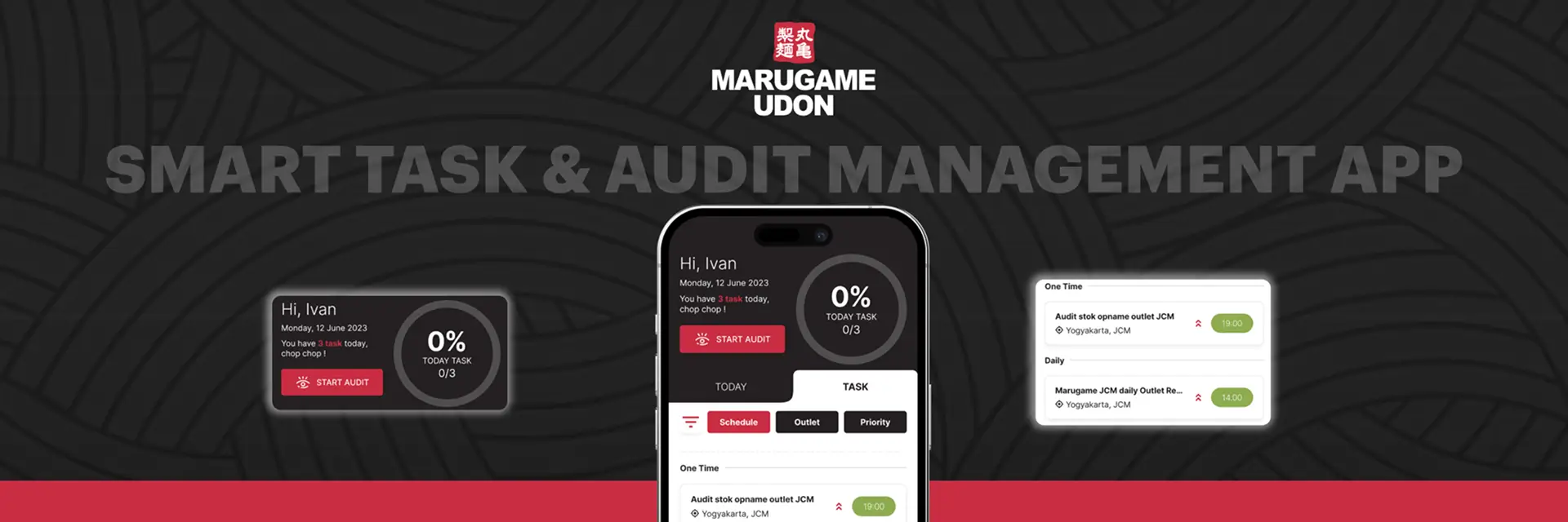 Digital solutions for mobile & cloud-based audit & task management at Marugame, enhancing efficiency, accuracy, and transparency in operational processes.