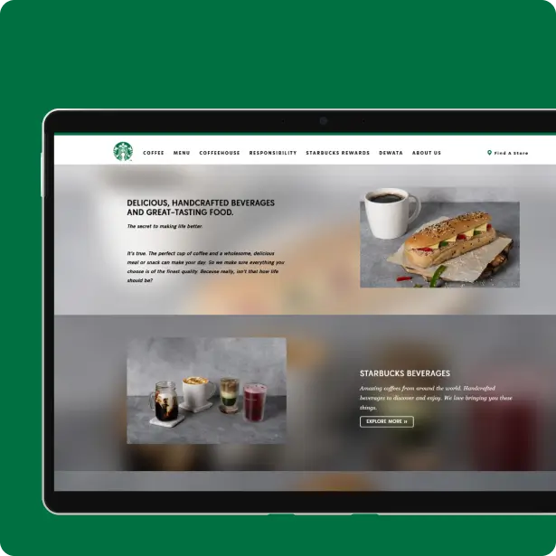 Technopartner Indonesia collaborated with Starbucks Indonesia to develop a modern and engaging website, designed to reflect the brand’s commitment to quality, ethical sourcing, and exceptional customer experience. The platform seamlessly showcases Starbucks' dedication to serving the finest coffee, sourced from Latin America, Africa, and Asia, and expertly roasted to bring out rich, balanced flavors.