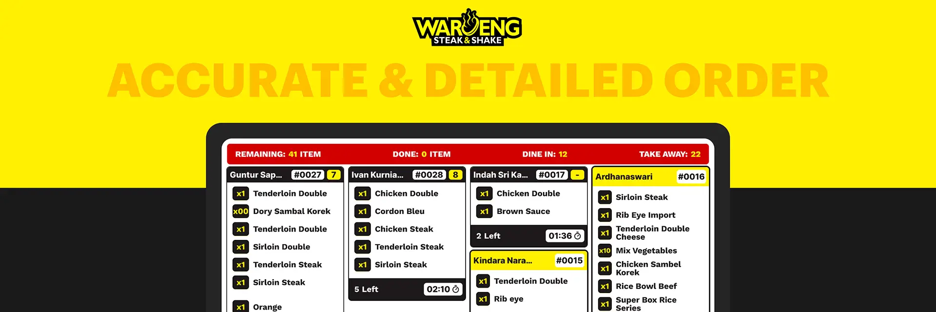 Waroeng Steak introduces a modern digital ordering concept that is fast, convenient, and efficient. This platform is designed to provide a digital screen used by kitchen staff to view incoming orders in real-time. This system helps streamline kitchen workflows, minimize errors in food preparation, and speed up the process from ordering to serving, ensuring a smoother kitchen operation.