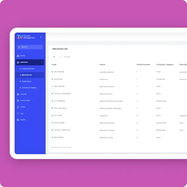 Technopartner Indonesia, in collaboration with Digital Daya Teknologi (DDT), developed the ZU Point CMS—an advanced voucher and promo code management platform designed to support one of Indonesia’s largest loyalty ecosystems. This system empowers many merchants and alot of outlets with tools to create, distribute, and monitor digital vouchers and promotional campaigns.