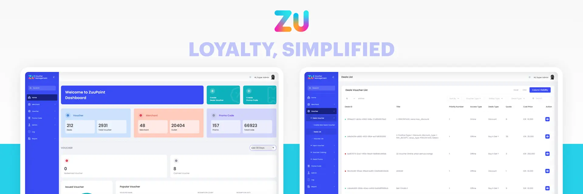 Technopartner Indonesia developed a robust digital loyalty ecosystem for ZU Point, a platform that connects users with a network of merchants across Indonesia through a unified rewards system. The solution includes a scalable backend infrastructure, an intuitive mobile web interface, and a CMS for tenant and campaign management. Key features include point tracking, voucher redemption, real-time promotional updates, and tenant performance monitoring. By enabling users to earn and redeem points seamlessly across multiple brands, the platform enhances user retention while empowering tenants with targeted marketing tools. This collaboration allowed ZU Point to launch a loyalty experience that is both engaging for users and valuable for partner merchants.